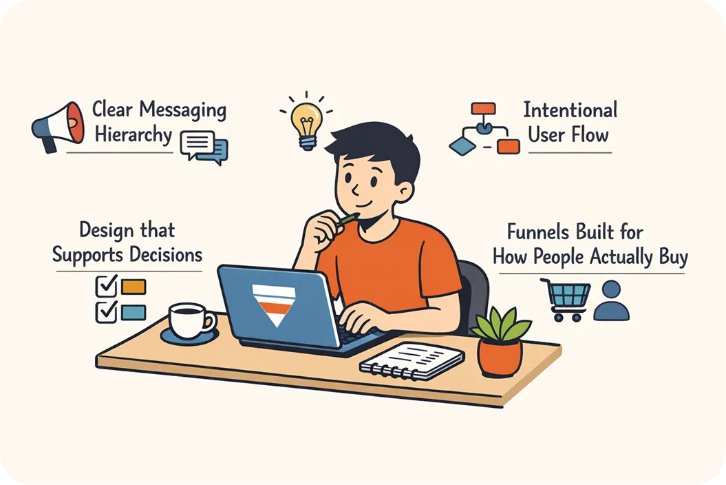 Most funnels don’t fail because of traffic. They fail because of unclear messaging, weak structure, or friction at the wrong moment.